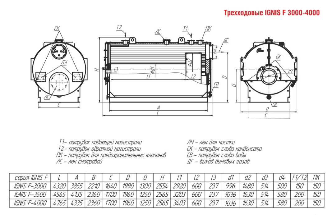 Технические характеристики водогрейного трёхходового котла ARCUS IGNIS F-4000