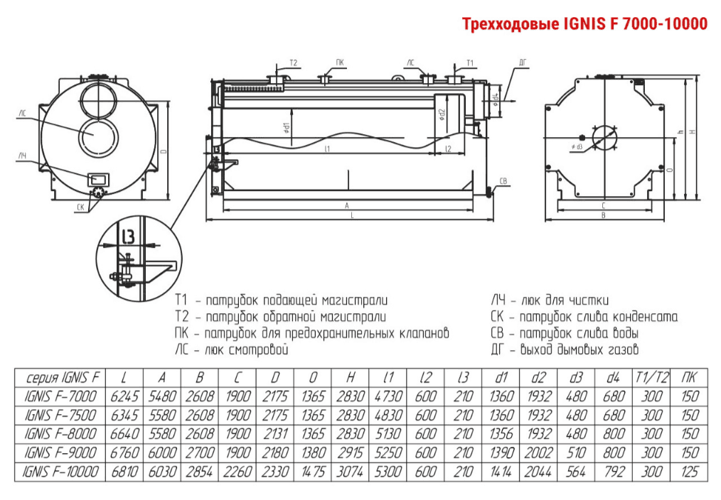 Технические характеристики водогрейного трёхходового котла ARCUS IGNIS F-9000